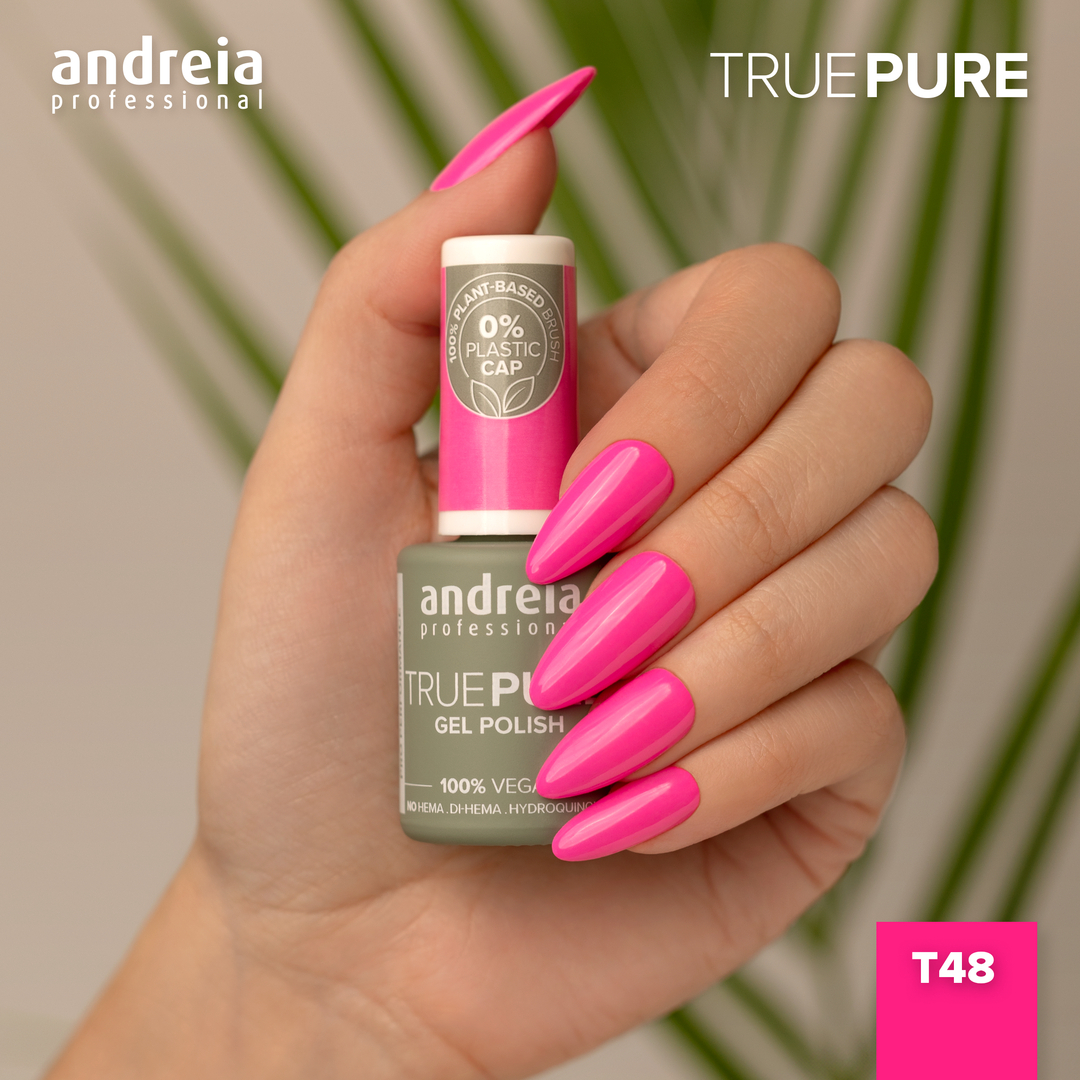 The Gel Polish Andreia True Pure T48 - Rosa choque audacioso que nos transporta para um lugar tropical.