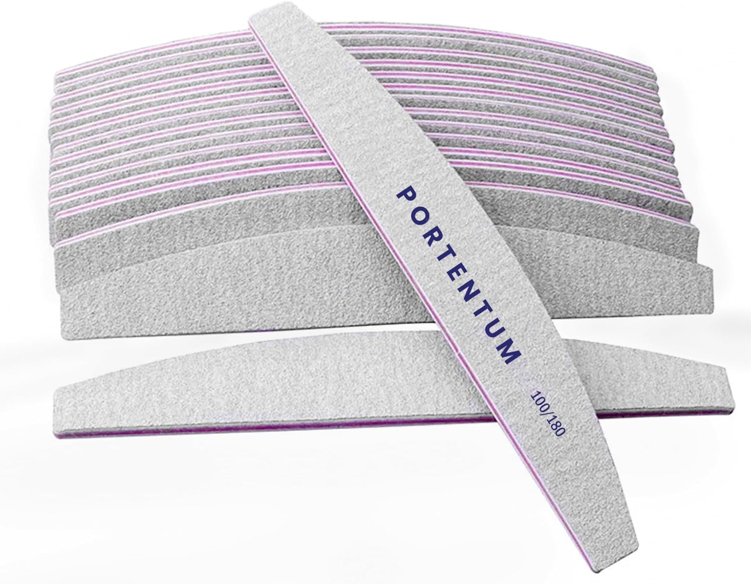 Limas de Unhas Dupla Face Versáteis: As limas de unhas profissionais PORTENTUM têm granulações diferentes em cada lado. O lado de grão 100 é perfeito para moldar e desbastar as unhas, enquanto o lado de grão 180 é excelente para polir e refinar as bordas das unhas.