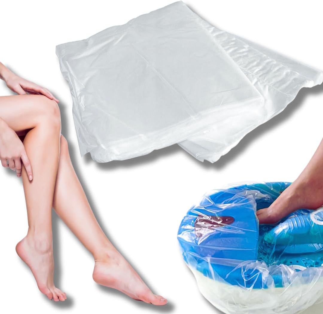 Este conjunto inclui 50 protetores transparentes em folha de HDPE, ideais para uso em salões de beleza, SPAs, centros de podologia, hospitais ou até mesmo no conforto da sua casa.