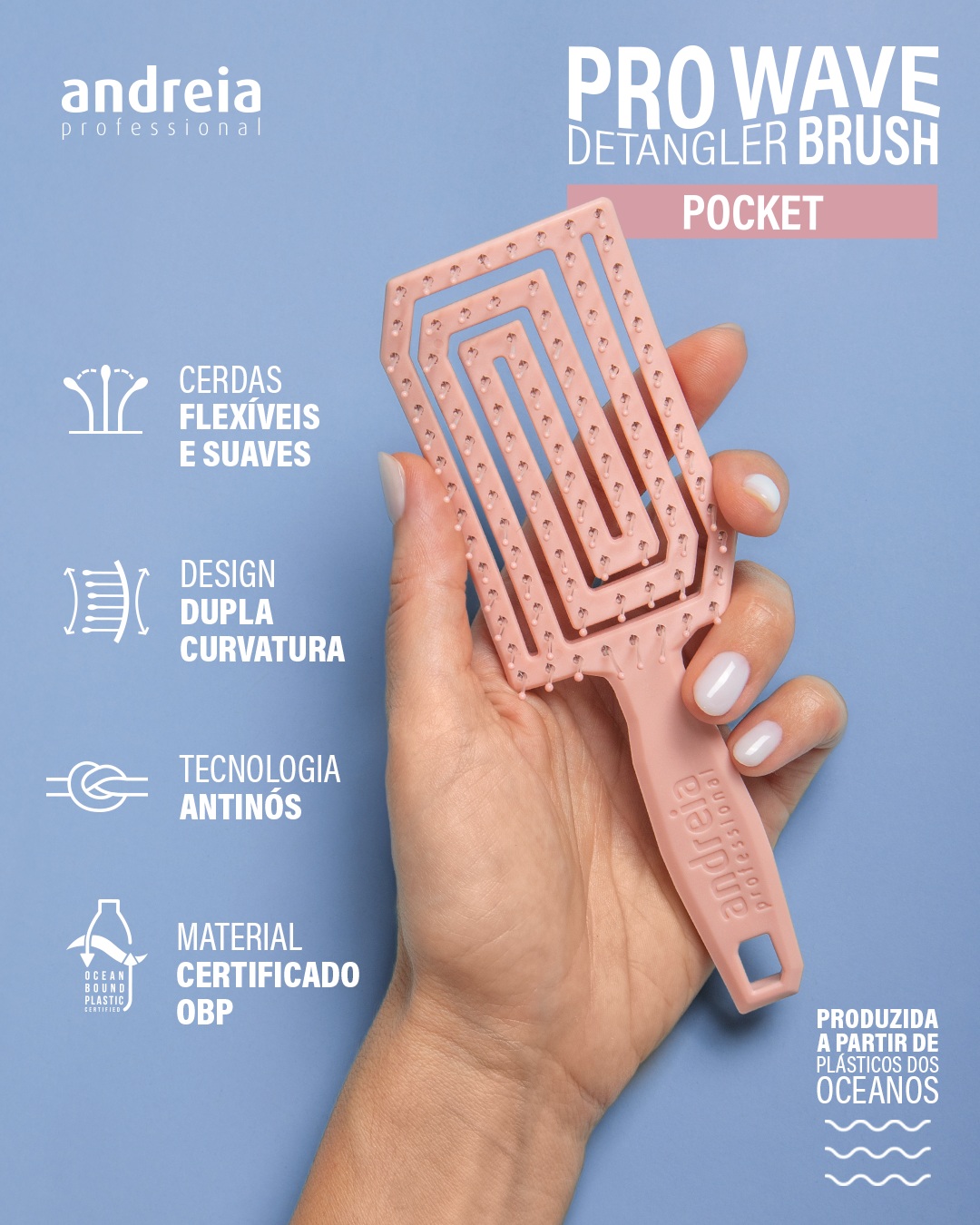 Pro Wave Andreia - Detangler Brush Pocket – Escova Azul