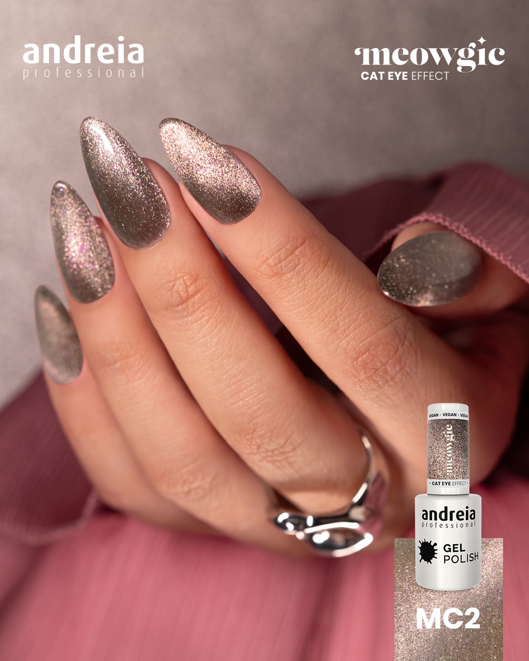 Verniz Gel Andreia Cat Eye Effect MC2 (Gliter Magnético Taupe com Brilhos Rosa)
