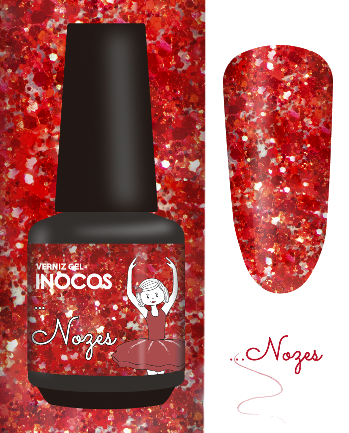 Verniz Gel Inocos – 267 - Bailados da Maria - Nozes (Glitter Vermelho)