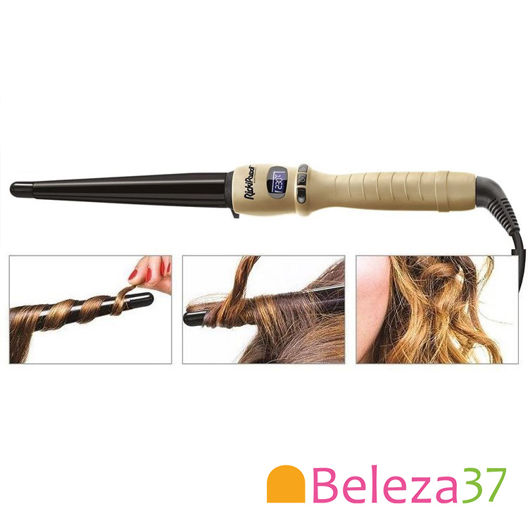 - Cone de 13 a 25 mm de diâmetro para caracóis e cachos com aparência mais natural;