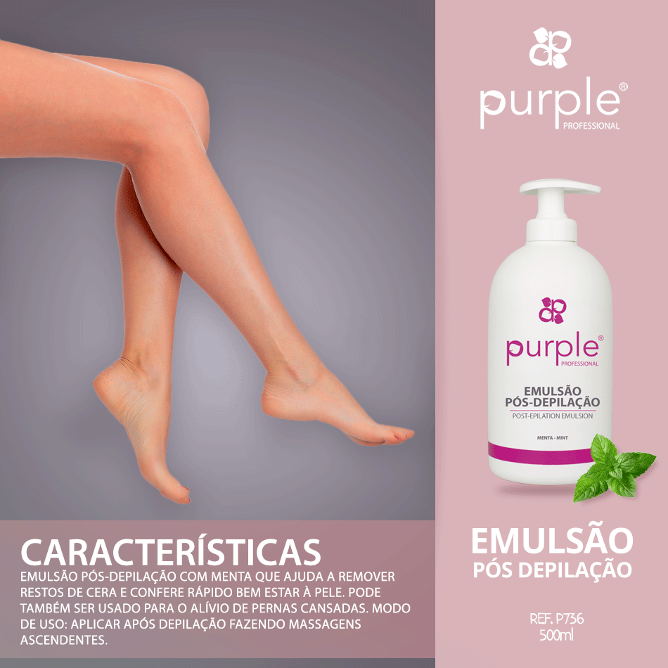 Home Depilação – Pós Depilação Emulsão Pós Depilação Menta Purple 500ml -5% Emulsão Pós Depilação Menta Purple 500ml 1 unidades em stock | SKU: B2502 12,06 € 12,70 € Desconto de 5%. IVA incluído. Desconto do dia do Pai Desconto imediato de 0,63 € (5%) neste produto. Válido de 16 de Março de 2026 às 00:00 até 23 de Março de 2026 às 00:00. Compre este produto e ganhe 60 Pontos! Comprar Contactar Adicionar à wishlist Emulsão pós-depilação com menta que ajuda a remover restos de cera e confere rápido bem estar à pele. Pode também ser usado para o alívio de pernas cansadas. 🌺 Aplicar após a depilação, ou no dia-a-dia, massajando sempre no sentido ascendente. Código Purple: P736 Embalagem com 500ml. Marca Purple Professional Características Partilhar