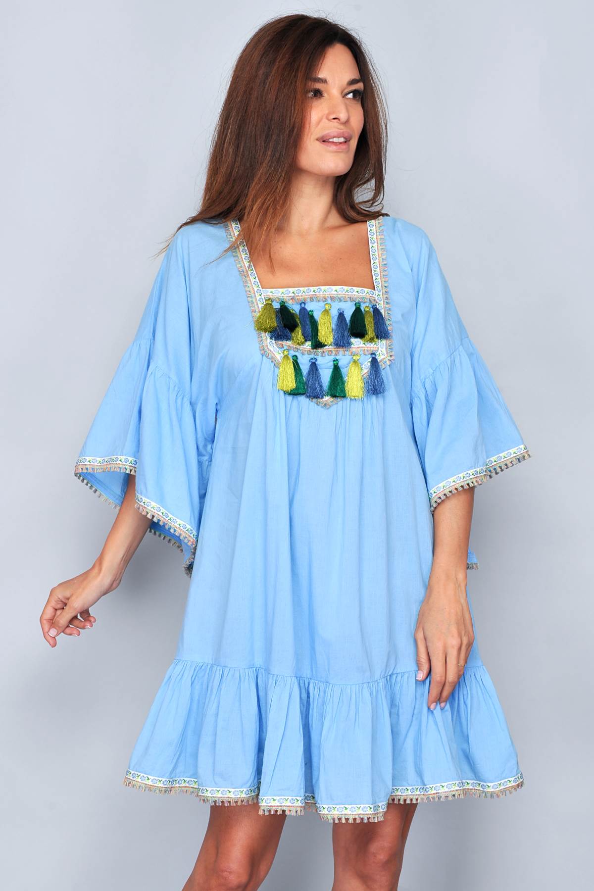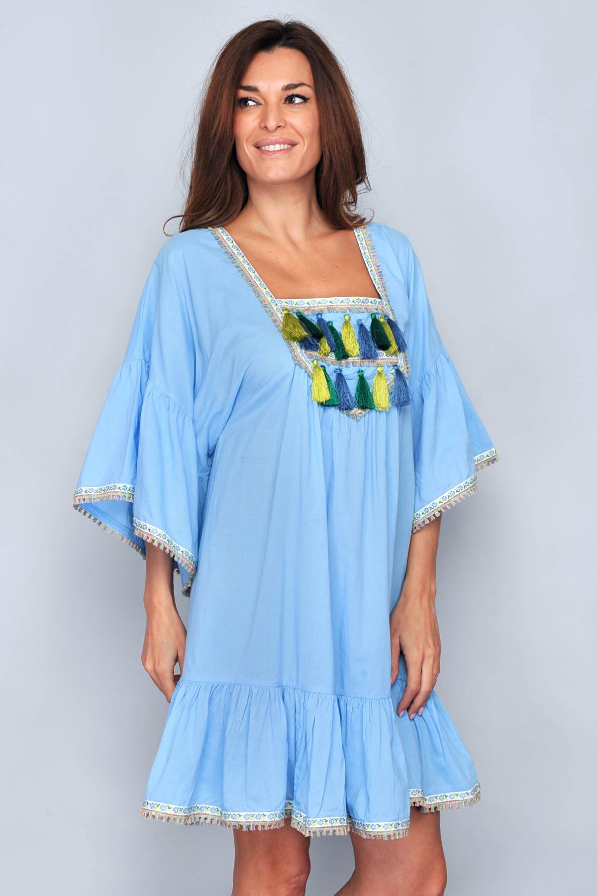 Home Vestido 311B3 - Tam. S -7% Vestido 311B3 - Tam. S 0 unidades em stock | SKU: B2775P.S 13,95 € 15,00 € Desconto de 7%. IVA incluído. Dia Internacional da Mulher Desconto imediato de 0,00 € (7%) neste produto. Válido de 2 de Março de 2026 às 00:00 até 9 de Março de 2026 às 00:00. Compre este produto e ganhe 69 Pontos! O produto encontra-se sem stock. Adicionar à wishlist Vestido de decote quadrado. Cor turquesa. Franjinhas verdes, pretas e azuis. SELECIONE O TAMANHO NO MENU. Composição: 100% Algodão. Fabrico: Índia. Lavagem: Lave separadamente as cores fortes. Mais artigos de moda, AQUI. Marca Não definida Características Partilhar