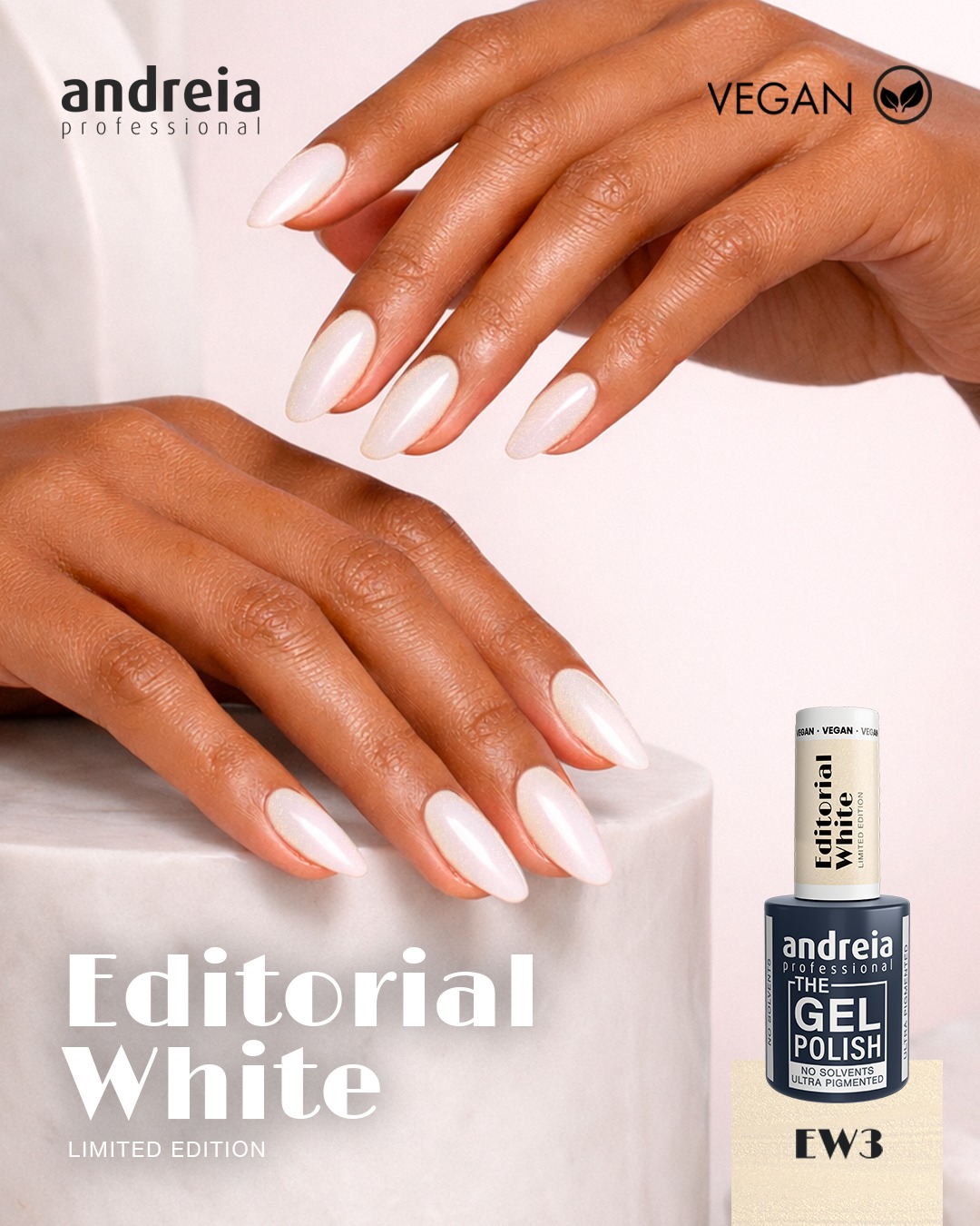 O tom EW3 da coleção EDITORIAL WHITE é a escolha perfeita para quem procura algo único. Este branco metálico com reflexos rosa capta a luz de forma especial, trazendo a leveza da tendência Cloud Dancer para uma dimensão mais radiante e moderna.