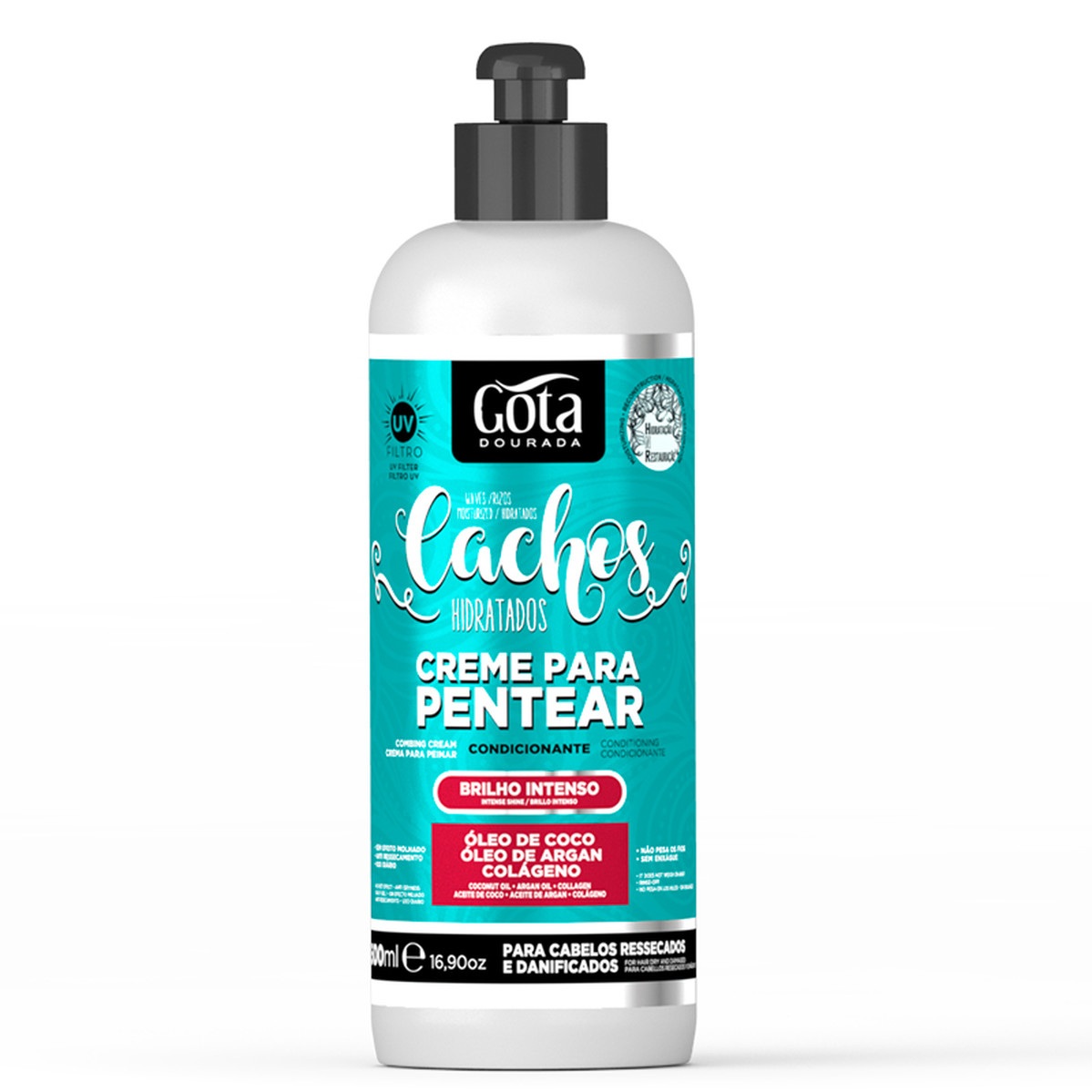 Recupere o brilho e a hidratação dos seus cabelos com o novo Creme para Pentear da Gota Dourada, especialmente formulado para Hidratar Cabelos Encaracolados.