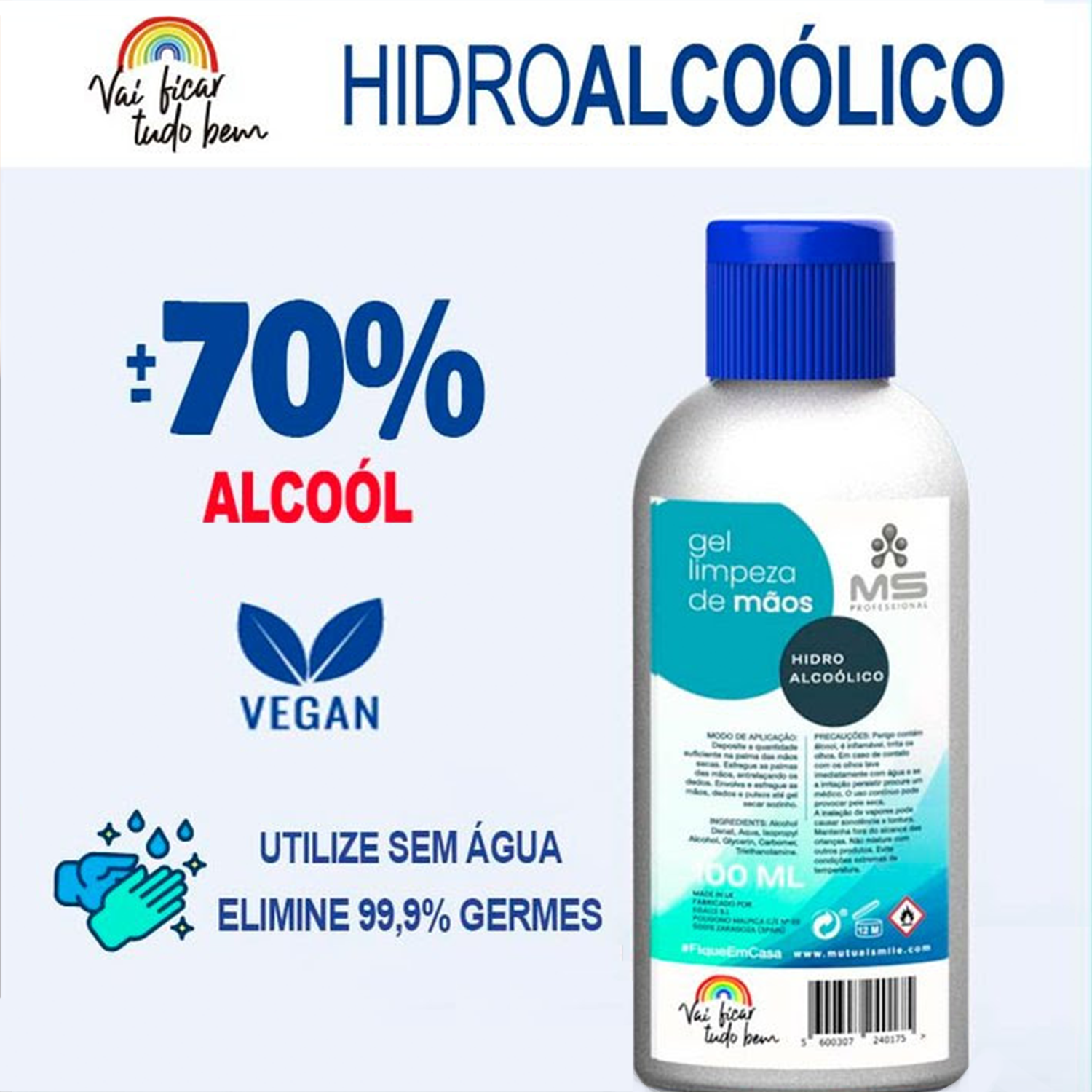 Home Higienização — Diversos Gel de Limpeza de Mãos MS com 70% Álcool 100ml -5% Gel de Limpeza de Mãos MS com 70% Álcool 100ml 0 unidades em stock | SKU: B3276 1,87 € 1,97 € Desconto de 5%. IVA incluído. Desconto do dia do Pai Desconto imediato de 0,00 € (5%) neste produto. Válido de 16 de Março de 2026 às 00:00 até 23 de Março de 2026 às 00:00. Compre este produto e ganhe 9 Pontos! O produto encontra-se sem stock. Adicionar à wishlist Uso Recomendado: Coronavirus COVID-19 100% Vegan Pode encomendar mais produtos de Proteção para o COVID-19 aqui: https://www.beleza37.pt/category/covid-19 Marca Não definida Características Partilhar