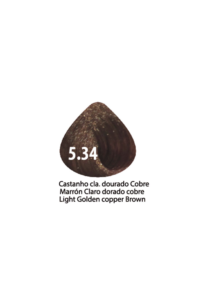 Mostruário de cor de cabelo castanho dourado cobre 5.34