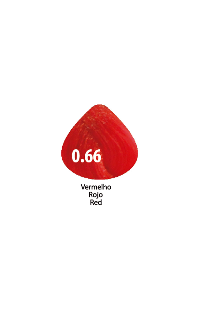 Amostra de cor vermelha em formato de gota com código 0.66 e legendas em várias línguas