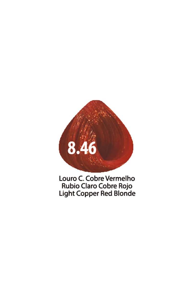 Amostra de cor de cabelo cobre vermelho claro com código 8.46