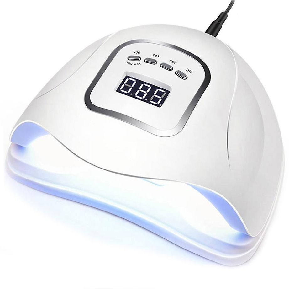 Lâmpada de unhas de gel branca com visor digital e luz azul ligada