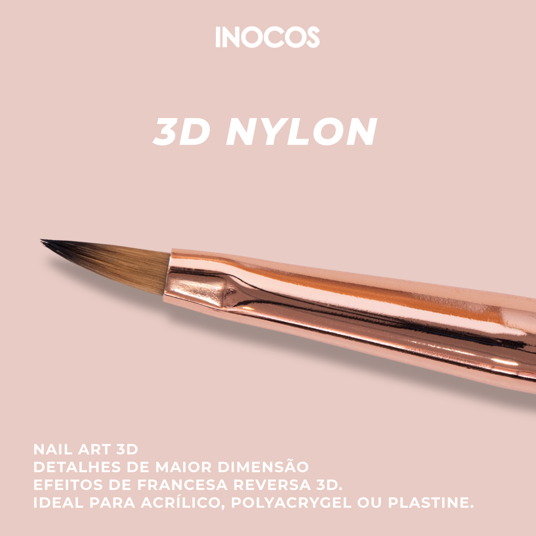 Pincel de nail art 3D INOCOS com cerdas e cabo metálico cor cobre
