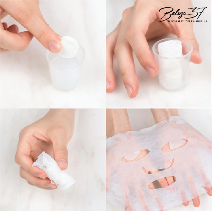 As mascaras desidratadas para tratamento facial são compactas, descartaveis e 100% biodegradaveis, usadas na aplicação de tratamentos faciais, aplicação de emolientes para limpeza de pele e na aplicação de vapor de ozono e máscara térmica.