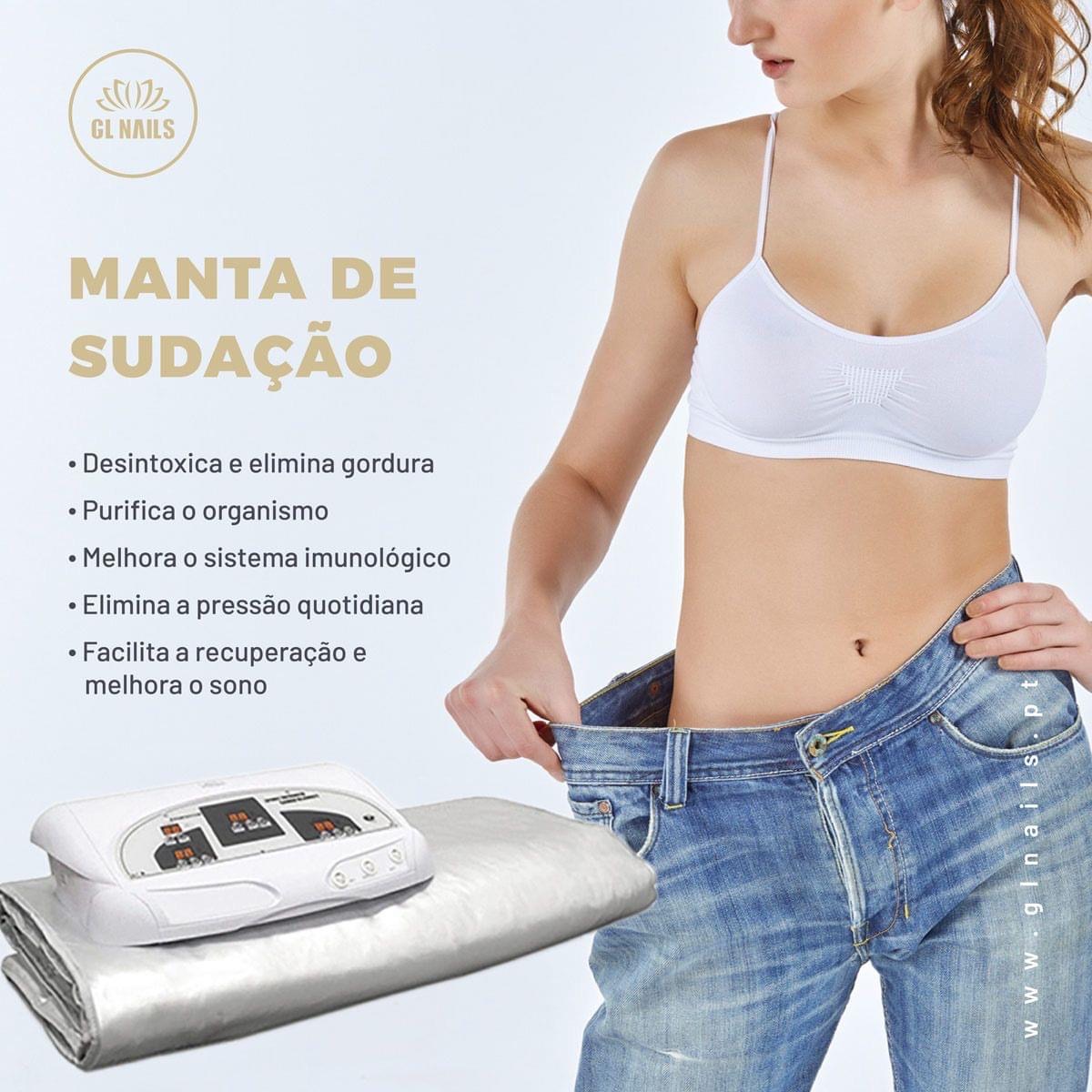 Manta de Sudação para tratamentos estéticos. Resistente e concebida para uma utilização exigente e profissional, pode ser utilizada em estabelecimentos profissionais como spas, centros de emagrecimento ou salões de beleza. Indicada para perda de peso e tratamento de celulite.