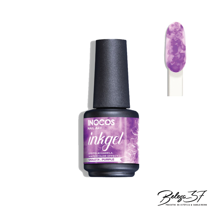 Verniz de unhas violeta INOCOS com efeito aquarela e glitter
