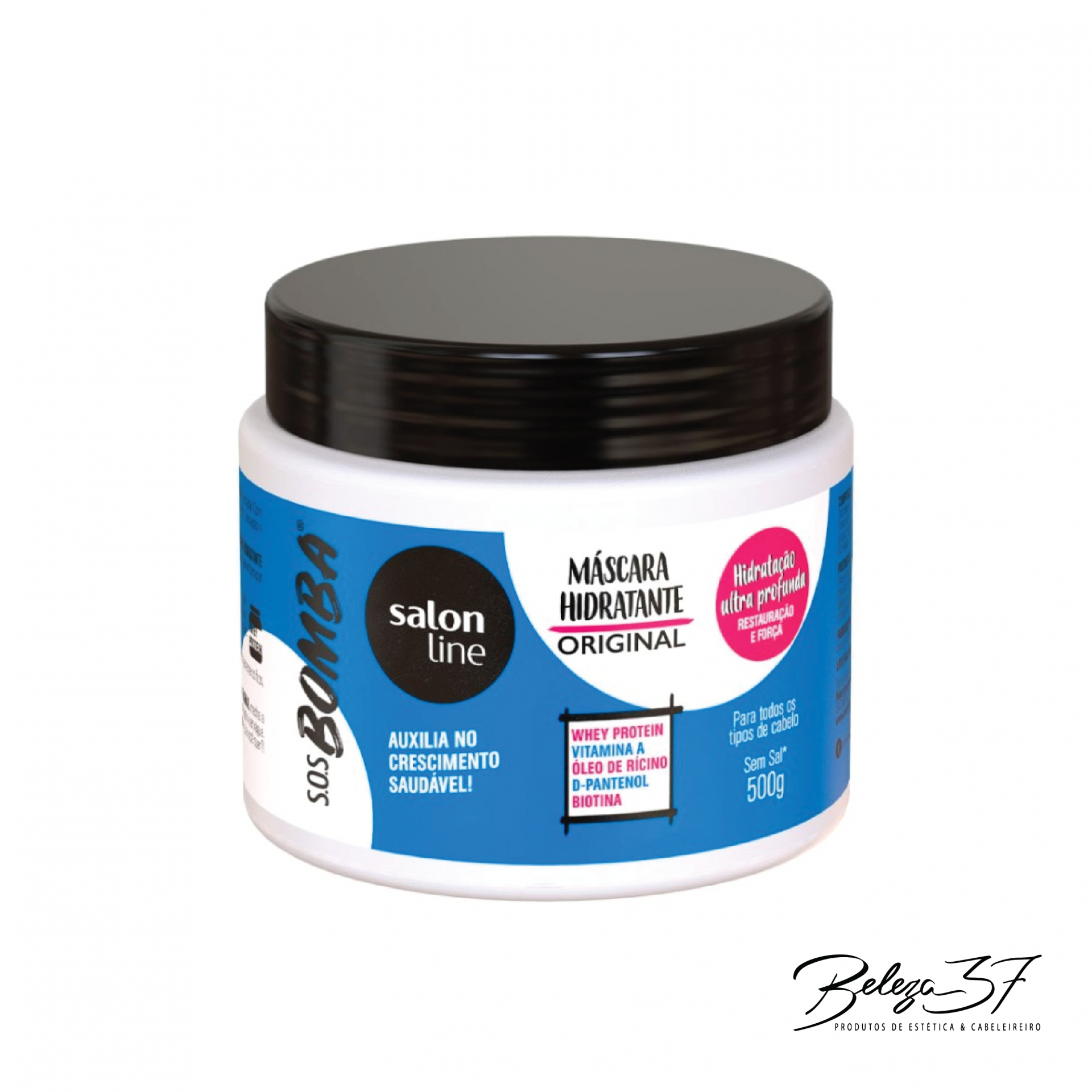 Whey Protein: rico em aminoácidos que ajudam a restaurar a fibra capilar danificada pelas agressões externas Vitamina A: responsável por fortalecer os cabelos, além de auxiliar no seu crescimento saudável D-Pantenol: poderoso agente hidratante, que melhora a textura da fibra capilar, dando um fim às pontas duplas Biotina: ajuda a prevenir a queda Óleo de rícino: hidrata, combate a queda por quebra, fortalece os fios e ajuda a recuperar a fibra capilar profundamente Modo de usar: Com o cabelo molhado, aplique a Máscara Hidratante S.O.S Bomba Original mecha a mecha, enluvando os fios do comprimento às pontas. Deixe atuar de 3 a 5 minutos e enxague.