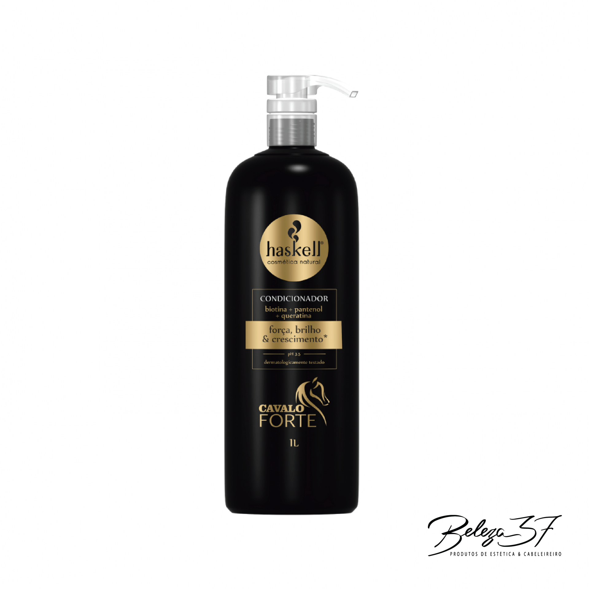 Condicionador Haskell Cavalo Forte em embalagem preta com tampa de bomba