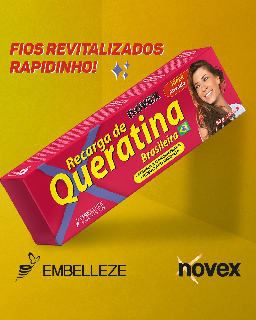 Cabelos Secos: Com os cabelos húmidos, aplicar a Recarga de Queratina Brasileira Novex Max Keratin nos fios, da raiz atè às pontas. Sem enxaguar, pentear de acordo com a sua preferência. Para um melhor resultado, finalizar com prancha ou escova e aplicar o Reparador de Pontas Novex Queratina Brasileira.