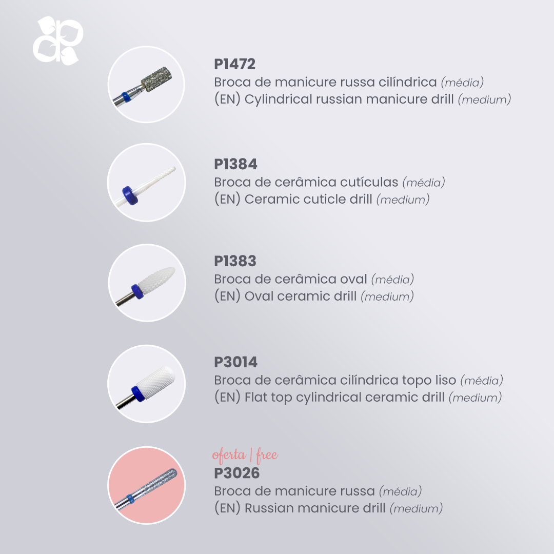 Home Unhas — Ponteiras de Broca Kit 2 Ponteiras Purple -5% Kit 2 Ponteiras Purple 1 unidades em stock | SKU: B6069 45,09 € 47,46 € Desconto de 5%. IVA incluído. Desconto do dia do Pai Desconto imediato de 2,37 € (5%) neste produto. Válido de 16 de Março de 2026 às 00:00 até 23 de Março de 2026 às 00:00. Compre este produto e ganhe 225 Pontos! Comprar Contactar Adicionar à wishlist NOVO KIT DRILLS 2 Composto por: -P1472 Broca Manicure Russa cilíndrica-P1384 Broca cerâmica cutículas-P1383 Broca cerâmica oval-P3014 Broca cerâmica cilíndrica topo liso𝗢𝗙𝗘𝗥𝗧𝗔 P3026 Broca manicure russa Mais Brocas Purple aqui: https://www.beleza37.pt/category/purple-purple-brocas Marca Purple Professional Características Partilhar
