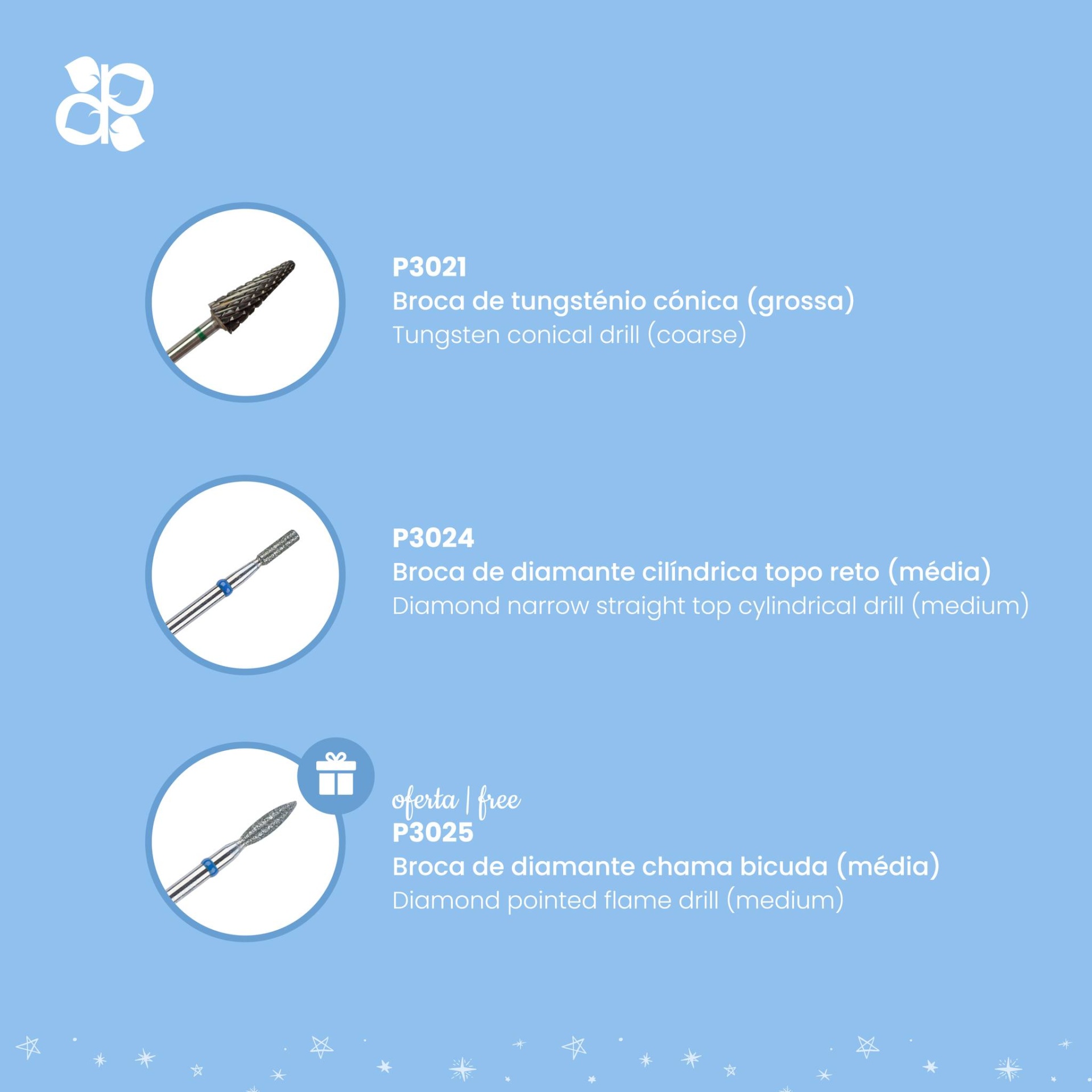 Home Unhas — Ponteiras de Broca Brocas Purple - Kit Drills 5 Brocas Purple - Kit Drills 5 2 unidades em stock | SKU: B6840 19,58 € Desconto de %. IVA incluído. Comprar Contactar Adicionar à wishlist 𝗡𝗘𝗪! 𝗞𝗜𝗧 𝗗𝗥𝗜𝗟𝗟𝗦 𝟱 Composto por/ Composed ofP3021 Broca Tungsténio Cónica (grossa)P3024 Broca de Diamante Cilíndrica Topo Reto (média)𝗢𝗙𝗘𝗥𝗧𝗔 P3025 Broca de Diamante Chama Bicuda (média).P3021 Tungsten Conical Drill (coarse)P3024 Diamond Narrow Straight Top Cylindrical Drill (medium)𝗢𝗙𝗙𝗘𝗥 P3025 Broca de Diamante Chama Bicuda (medium).#purpleprofessional #nails #nogti #ongles #uñas #Νύχια #Нокти #الأظافر #Nägel #Nagi 甲 #Τζελνύχια #unhas #asmrnails #trends #nailartvideos #acrygel #drills #manicuredrills #gelpolish #new #drills #kitdrills Mais Brocas Purple aqui: https://www.beleza37.pt/category/purple-purple-brocas Marca Purple Professional Partilhar