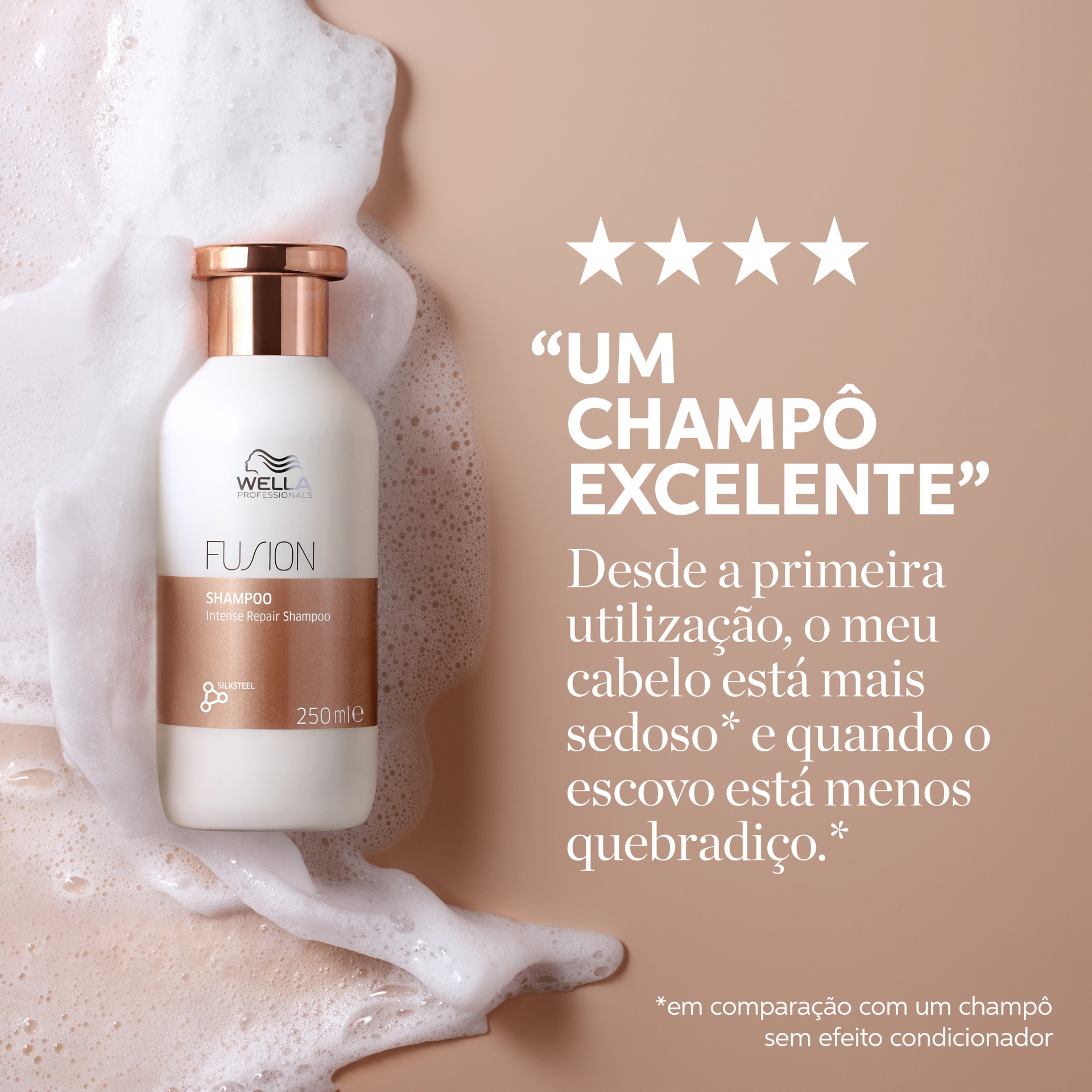 O champô Fusion da Wella Professionals limpa e aumenta a resistência do cabelo contra a quebra.