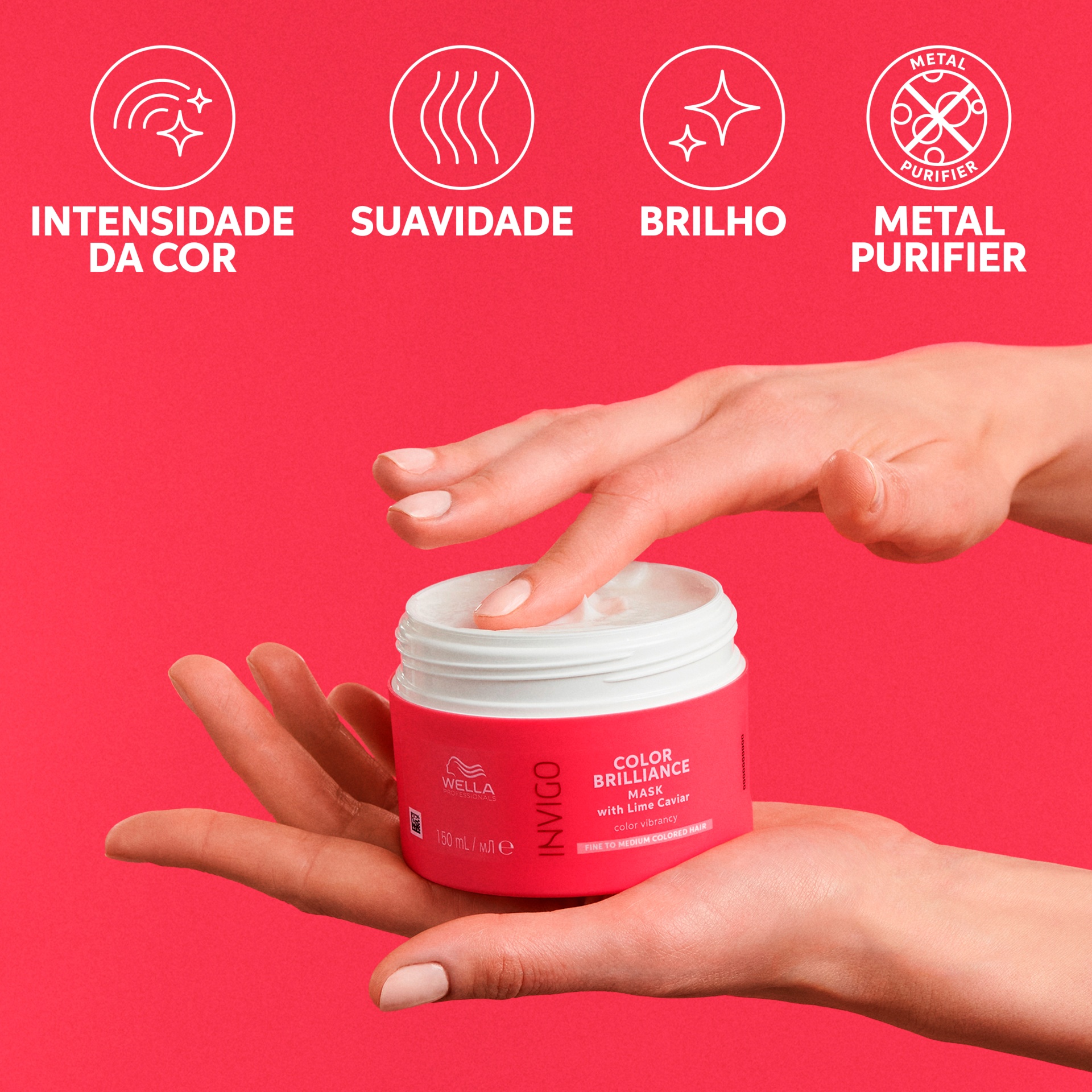 Máscara para cabelo fino a normal Color Brilliance INVIGO da Wella Professionals com tecnologia Color Brilliance-Blend™: As moléculas encapsuladoras do cobre mantêm a intensidade da cor.