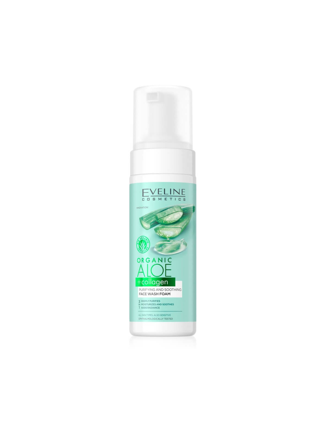 Eveline Cosmetics Organic Aloe and Collagen Face Wash Foam é um cuidado 3 em 1: