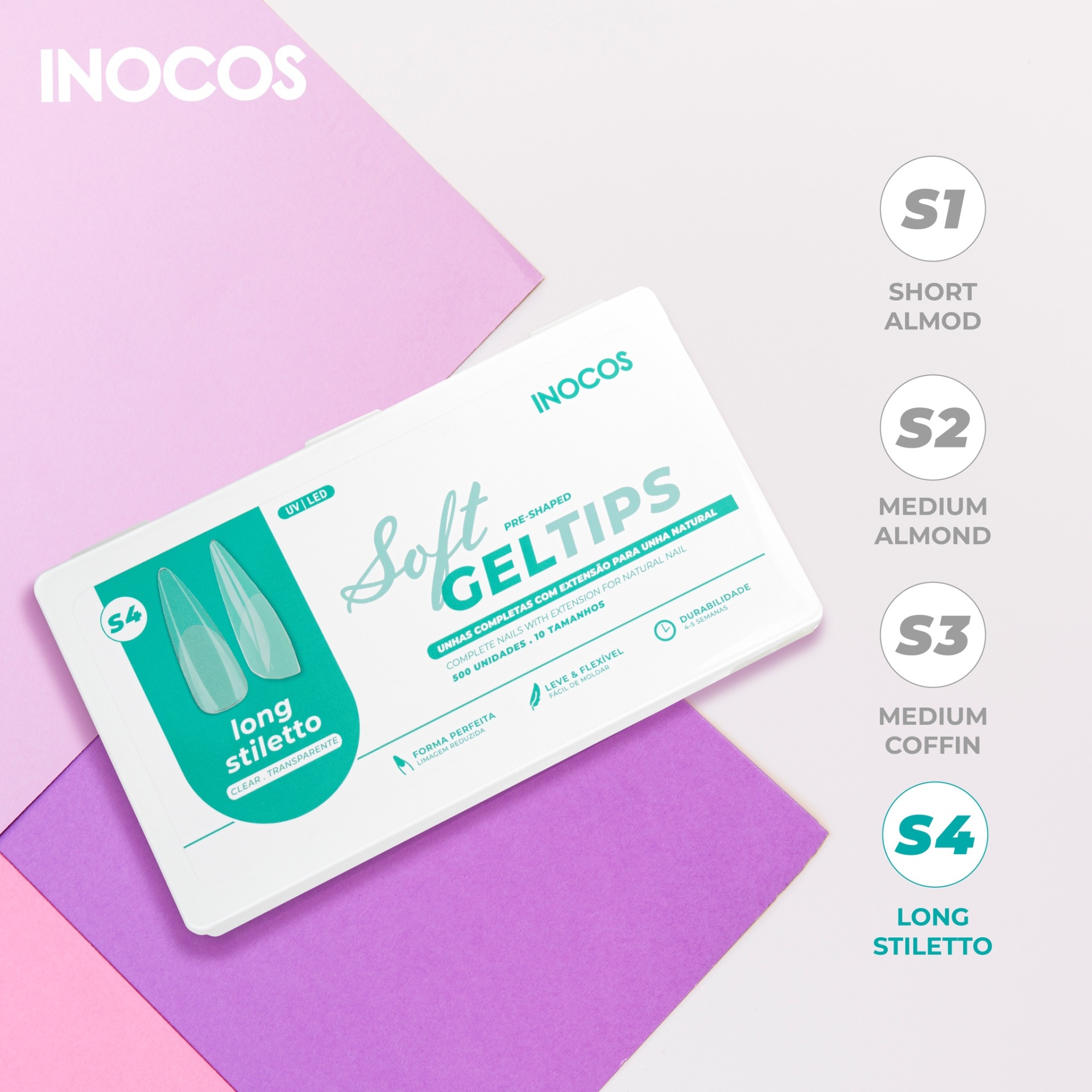 Soft Gel Tips Inocos Long Stiletto S4 (stiletto longo) 500 unid