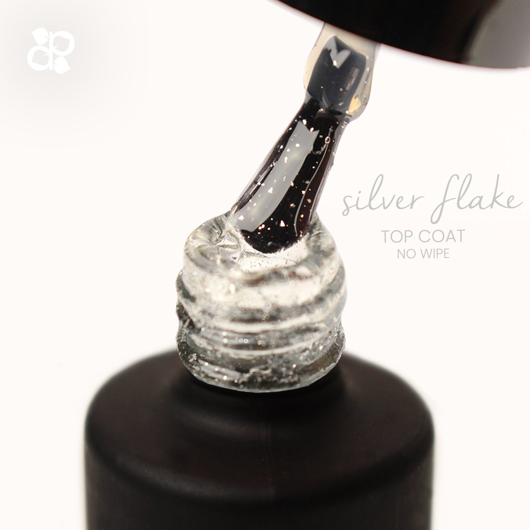 Finalizante sem goma com flocos Silver para Verniz Gel, Gel e Acrílico.