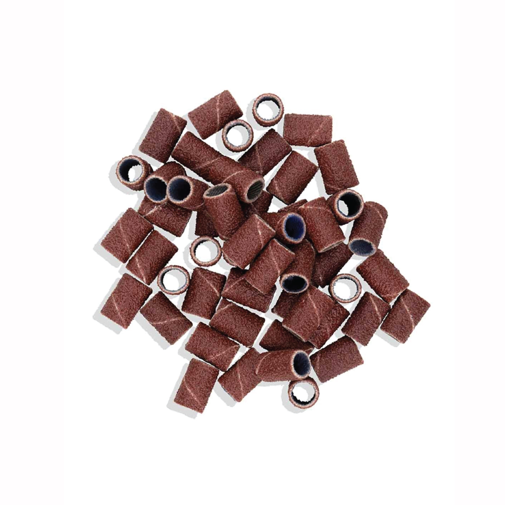 Lixas cilíndricas marrons para lixadeiras sobre fundo branco