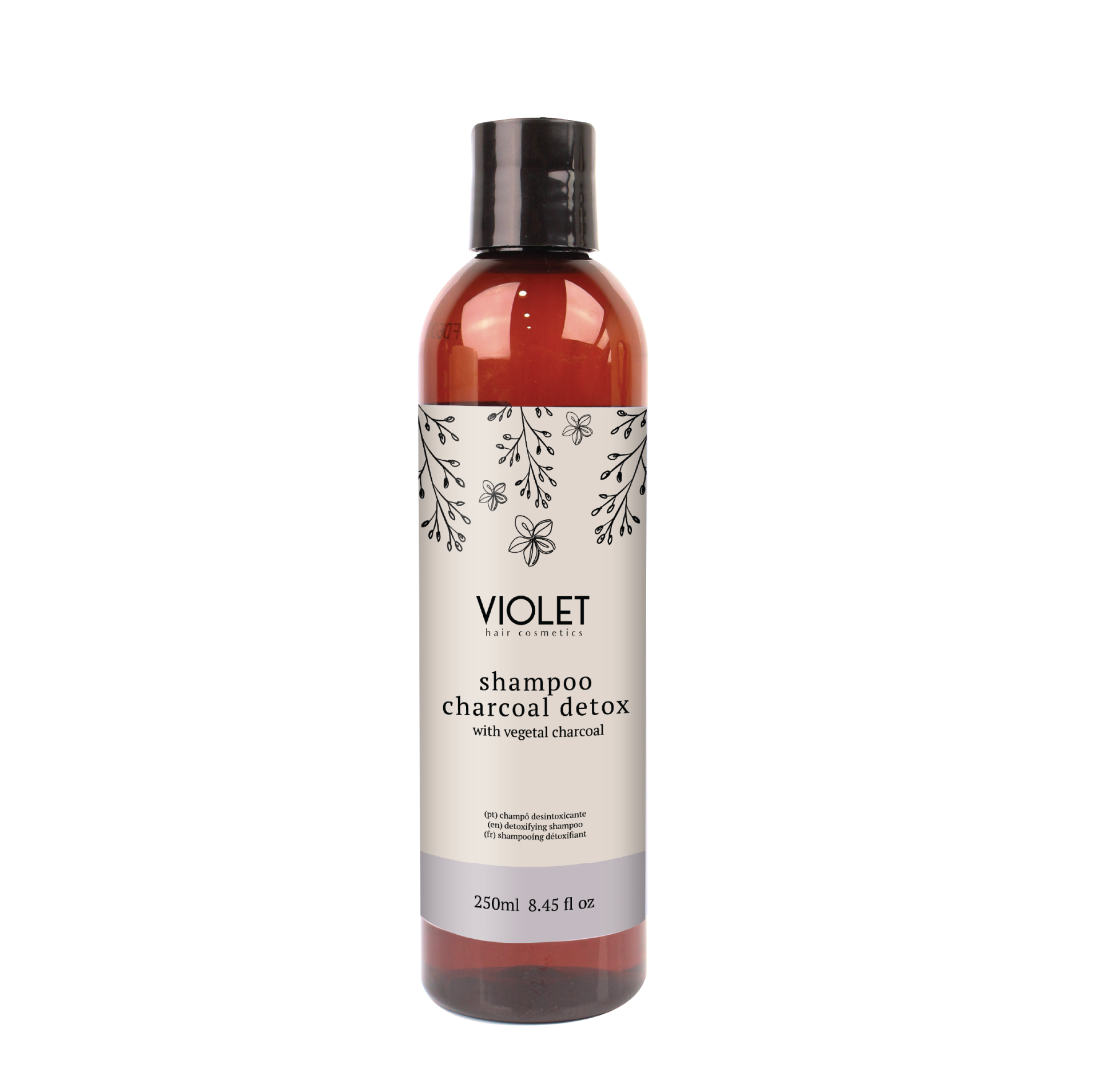 Frasco de shampoo de carvão vegetal da marca Violet