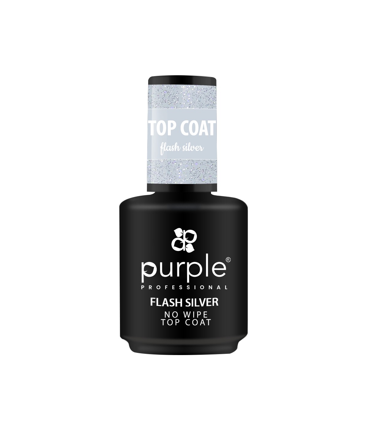 Top Coat sem goma efeito fash silver com base transparente para utilizar em gel, verniz gel, acrygel e acrílico. Catalisa em LED/UV em 60/120 segundos respetivamente.