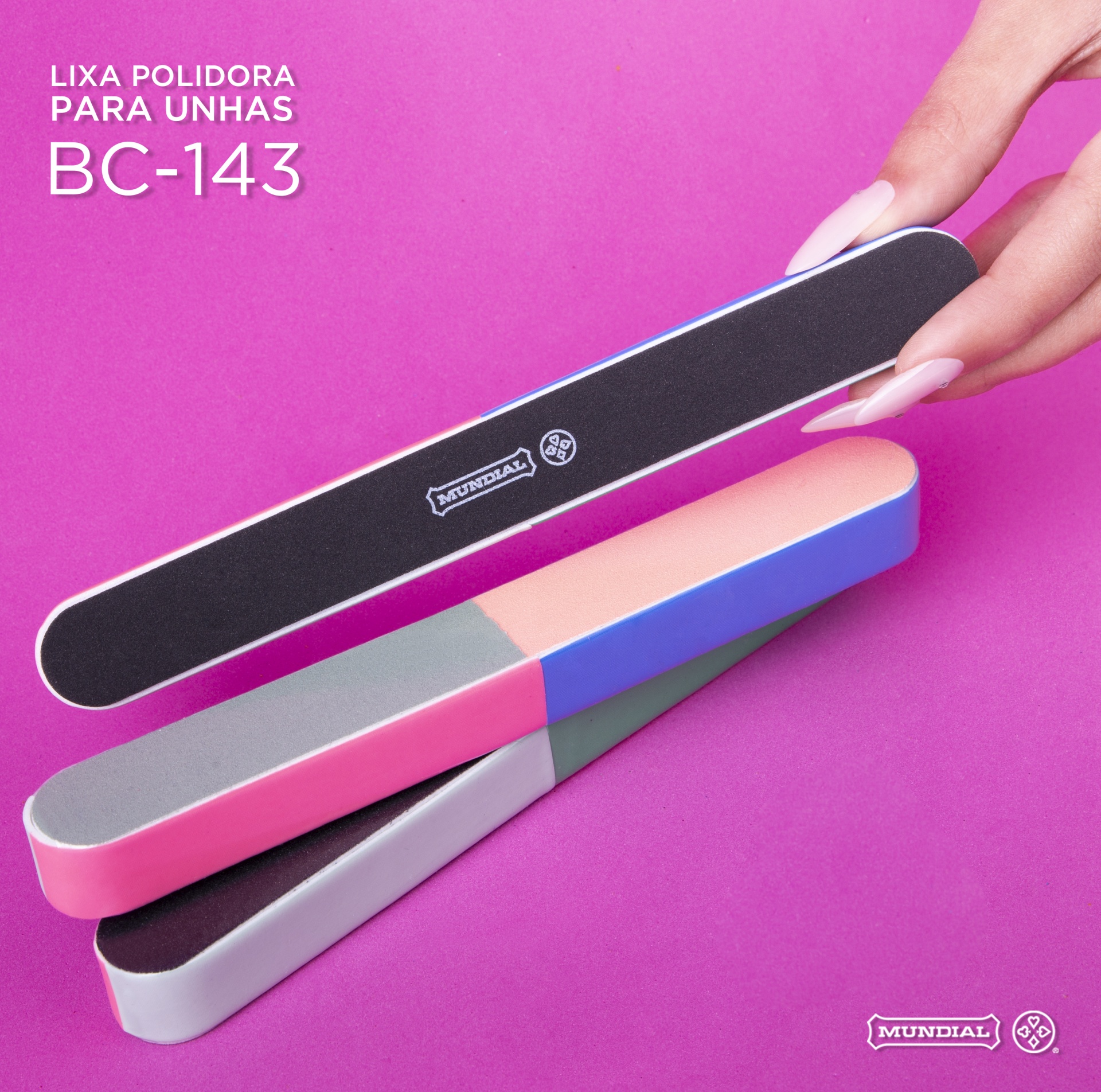 A linha de blocos e lixas para mãos e pés Mundial conta com produtos ideais para manter o cuidado diário das unhas, calos e calcanhares! Com abrasivos para polimento, redução de comprimento das unhas e correção de imperfeições, os modelos são anatômicos e possuem diversas opções para quaisquer situações, garantindo unhas preparadas para esmaltação e pés saudáveis.