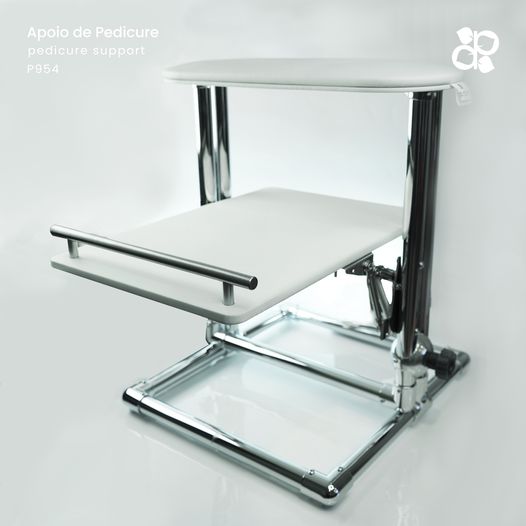 A sua altura ajustável garante que as clientes possam encontrar a posição mais confortável para os seus pés, assegurando o máximo de conforto durante a sessão. Além disso, as características do apoio permitem um maior conforto para a esteticista, promovendo uma postura corporal correta e reduzindo o esforço durante o trabalho, utilizando a base para colocar o seu material como por exemplo o torno e o aspirador.