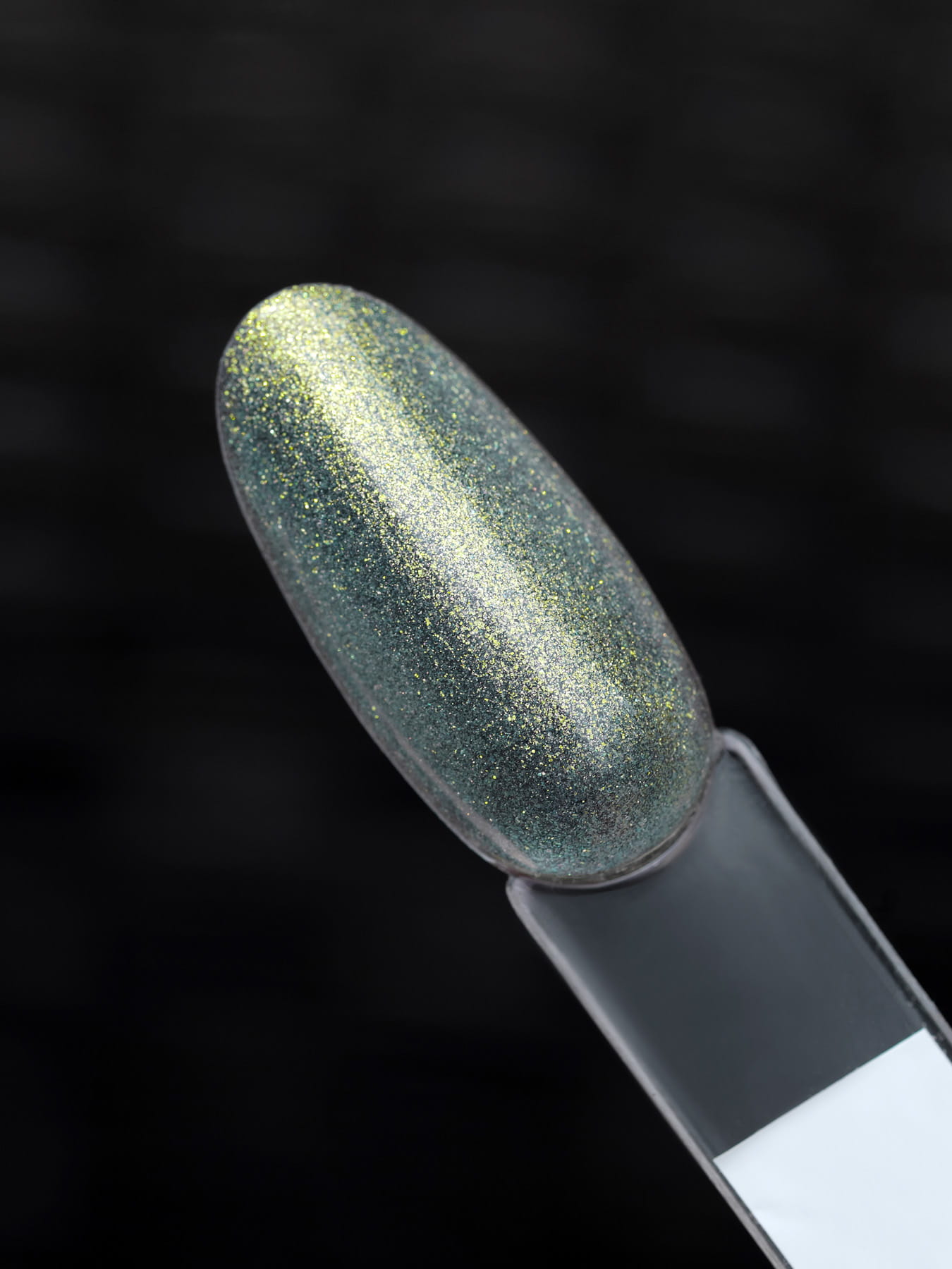Este tom complexo é como um feitiço do passado – uma base esverdeada imersa em um pó dourado holográfico, lembrando tesouros encontrados num cofre antigo.