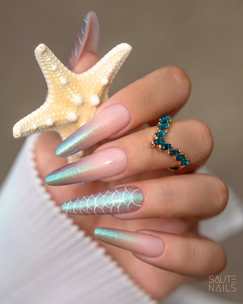 Cor da Coleção Mermaid Melody - Mergulhe nas histórias do mar com a coleção Mermaid Melody da Saute Nails, que transformará suas unhas em hipnotizantes tons de cauda de sereia.