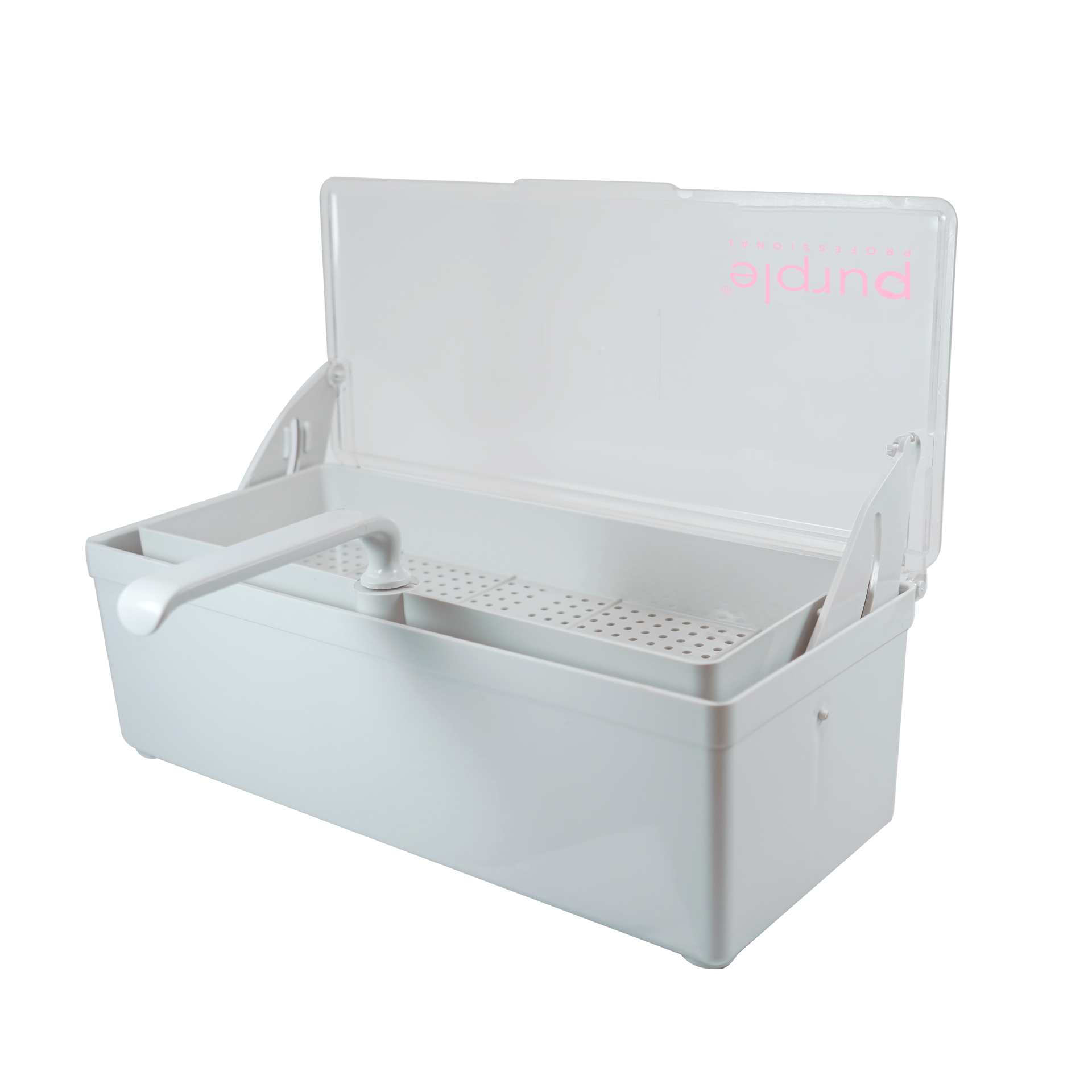 Caixa de esterilização por imersão, ideal para desinfetar instrumentos de manicure e pedicure através do método de imersão.