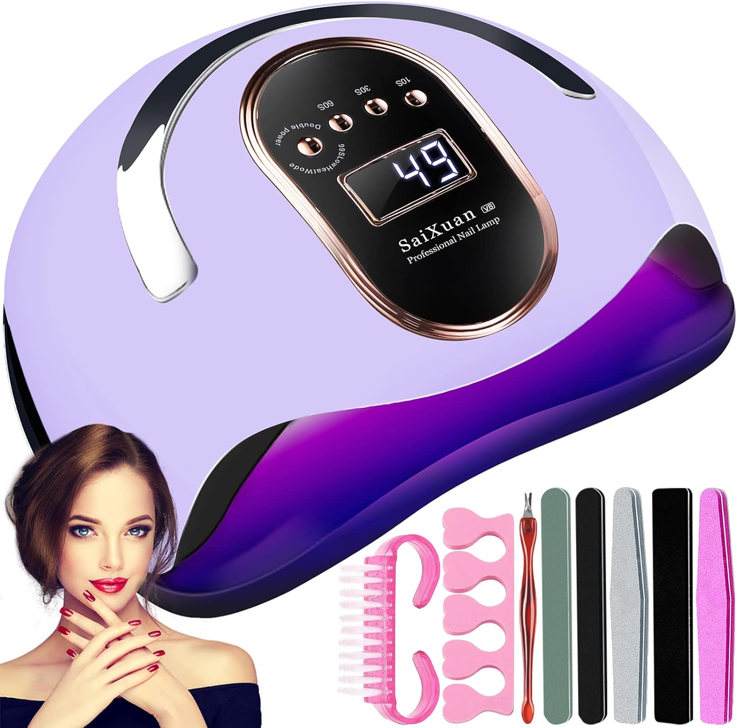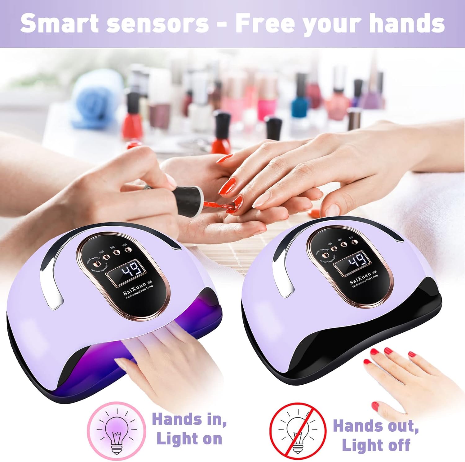 Catalisador de unhas de 168 W e 36 LEDs: a lâmpada LED UV de 168 W utiliza a mais recente tecnologia de fonte de luz dupla. Cada LED SMD contém dois comprimentos de onda, 365 nm e 405 nm. Com 36 LEDs na lâmpada, obtém-se uma cura uniforme, reduzindo significativamente o tempo de cura. A luz suave está mais próxima da luz branca e não danifica os olhos ou a pele.