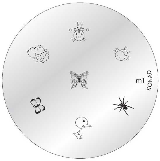 Prato redondo com desenhos para carimbos de unhas e texto m1 KONAD