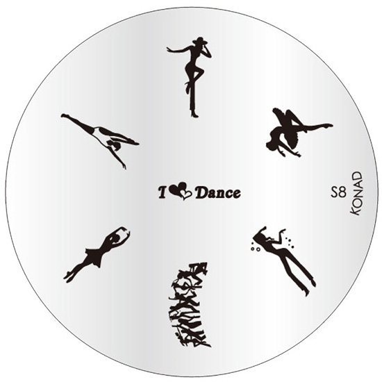Disco metálico redondo para carimbos de unhas com desenhos de dança e texto