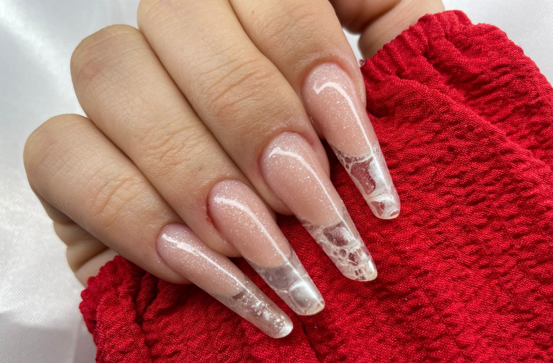 - Encapsulados, degradê com glitter; baby boomer e francesa reversa;