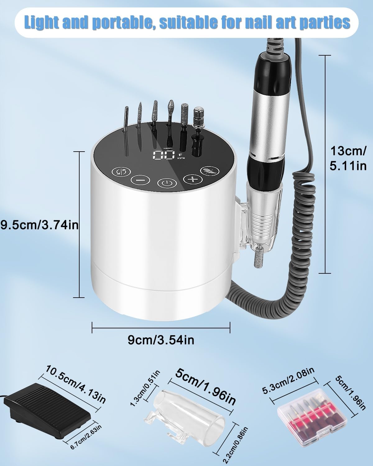 Fresa Elétrica Branca Redonda de 35.000 RPM com Pedal e 6 Brocas