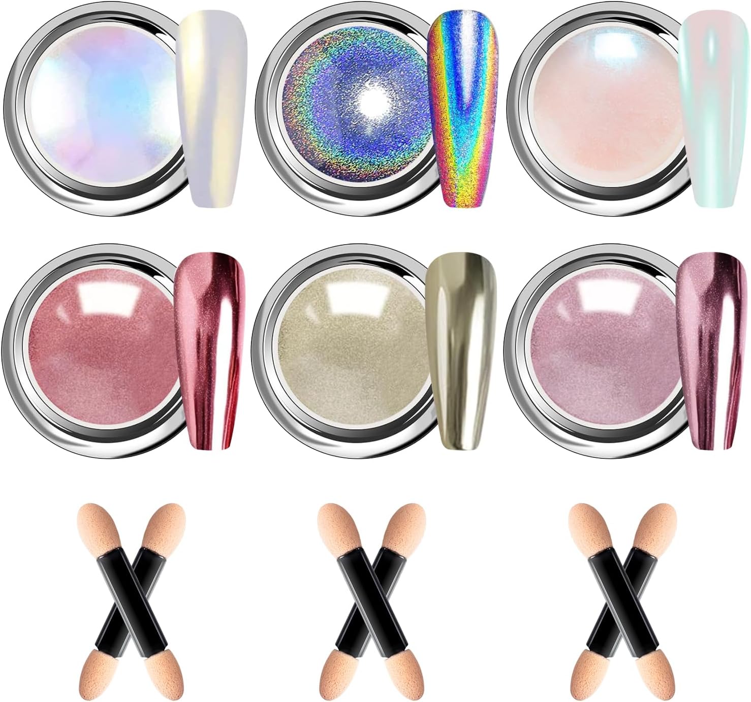 Kit de 6 Pós para Nail Art: efeito pérola, pigmento cromado de sereia, glitter, purpurina, pó de espelho para Nail Art.