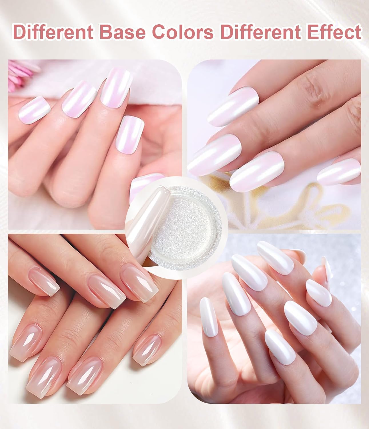 Pó de Unhas Cromado Pérola: Este pó ultrafino oferece um ótimo efeito cromado, sendo feito de pó de resina sintética 100% pura e de longa duração. A textura suave e sem grânulos torna as suas unhas mais deslumbrantes.