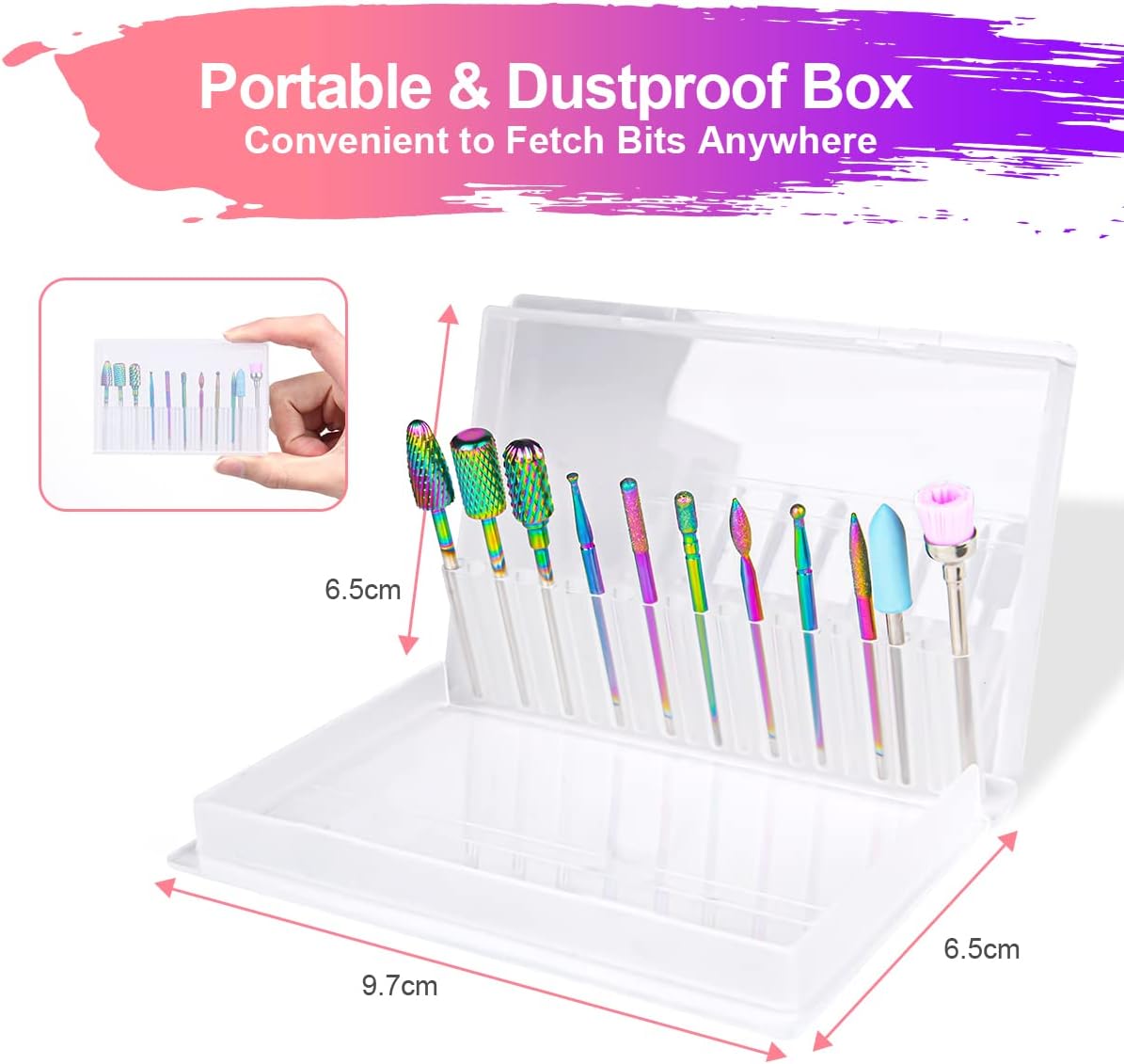 Kit com 11 Ponteiras de Broca em Tungsténio para Remoção de Gel + Oferta Caixa Armazenamento
