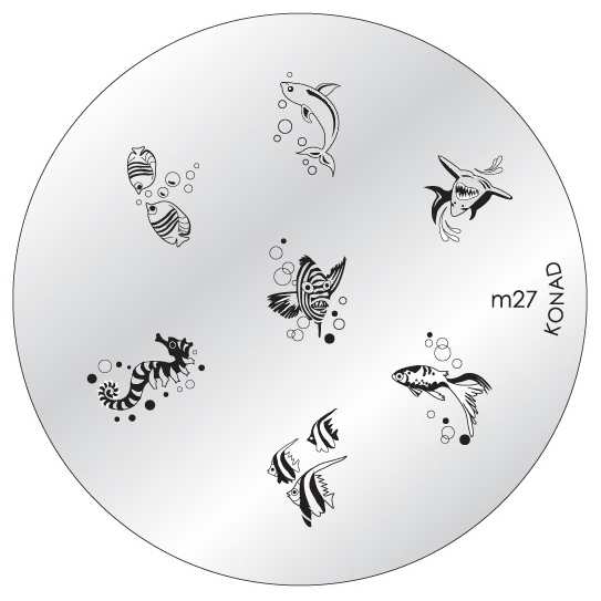Placa redonda metálica para carimbo de unhas com desenhos de peixes e cavalos-marinhos