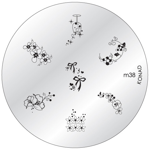 Placa metálica de carimbo de unhas com desenhos florais e texto m38 KONAD