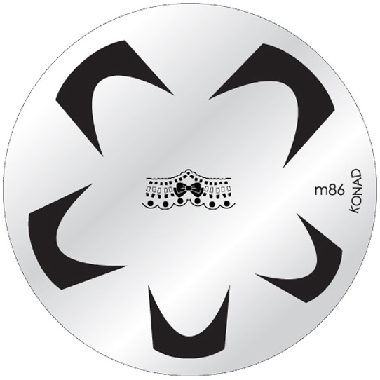 Placa de metal prateada com padrões de carimbos de unhas e texto m86 KONAD