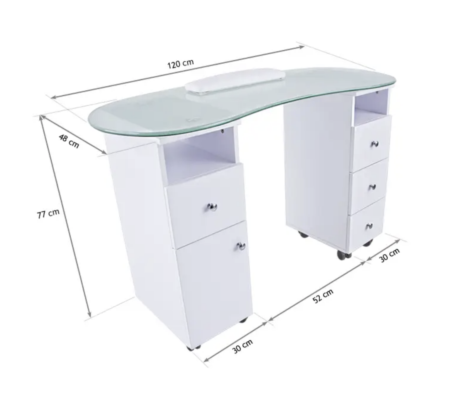 Home EQUIPAMENTOS Mesa de Manicura com Gavetas Mesa de Manicura com Gavetas SKU: B8595 375,00 € Desconto de %. Comprar Contactar Adicionar à wishlist Mesa de manicure muito prática, com duas gavetas e vidro transparente. ENVIAMOS APENAS PARA PORTUGAL CONTINENTAL E COM OFERTA DE PORTES!!! NOTA: NÃO ENVIAMOS ESTE PRODUTO À COBRANÇA. CARACTERISTICAS: - Gavetas laterais com muito espaço. - Mesa ergonómica de vidro transparente com almofada incorporada. - Puxadores cromados. - Dispõe de 8 rodas para facilitar a deslocação. DADOS TÉCNICOS: - Medidas gerais (cm): 77 altura x 120 largura x 48 profundidade - Peso apróximado: 42 Kg IMPORTANTE: Envio direto do fabricante com entrega de 2 a 5 dias. Marca Não definida Partilhar